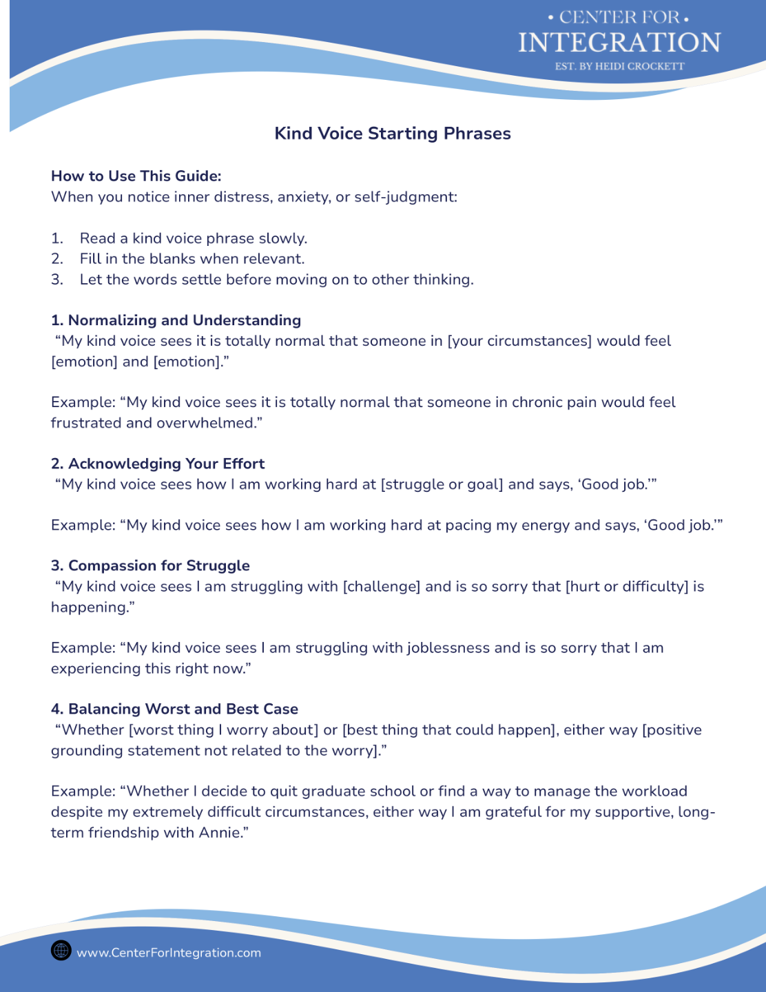 This pocket guide gives you simple phrases and prompts to help shift from critical voice thinking into kind voice awareness, both for yourself and in how you relate to others.