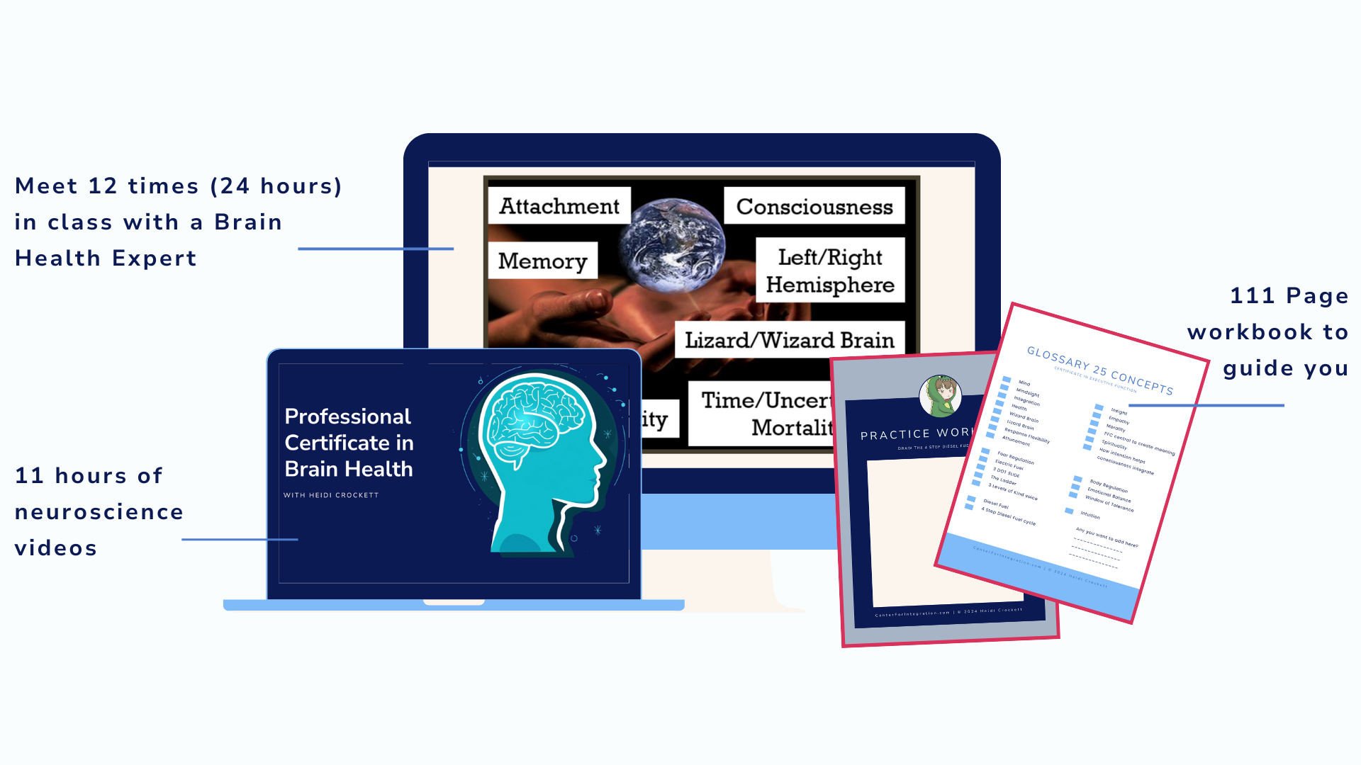 Finally I mentioned my Professional Certificate in Brain Health Program which starts Feb 6th and meets 12 times from 7 to 9pm EST on Thursdays (recordings are available if you can’t attend live meetings).